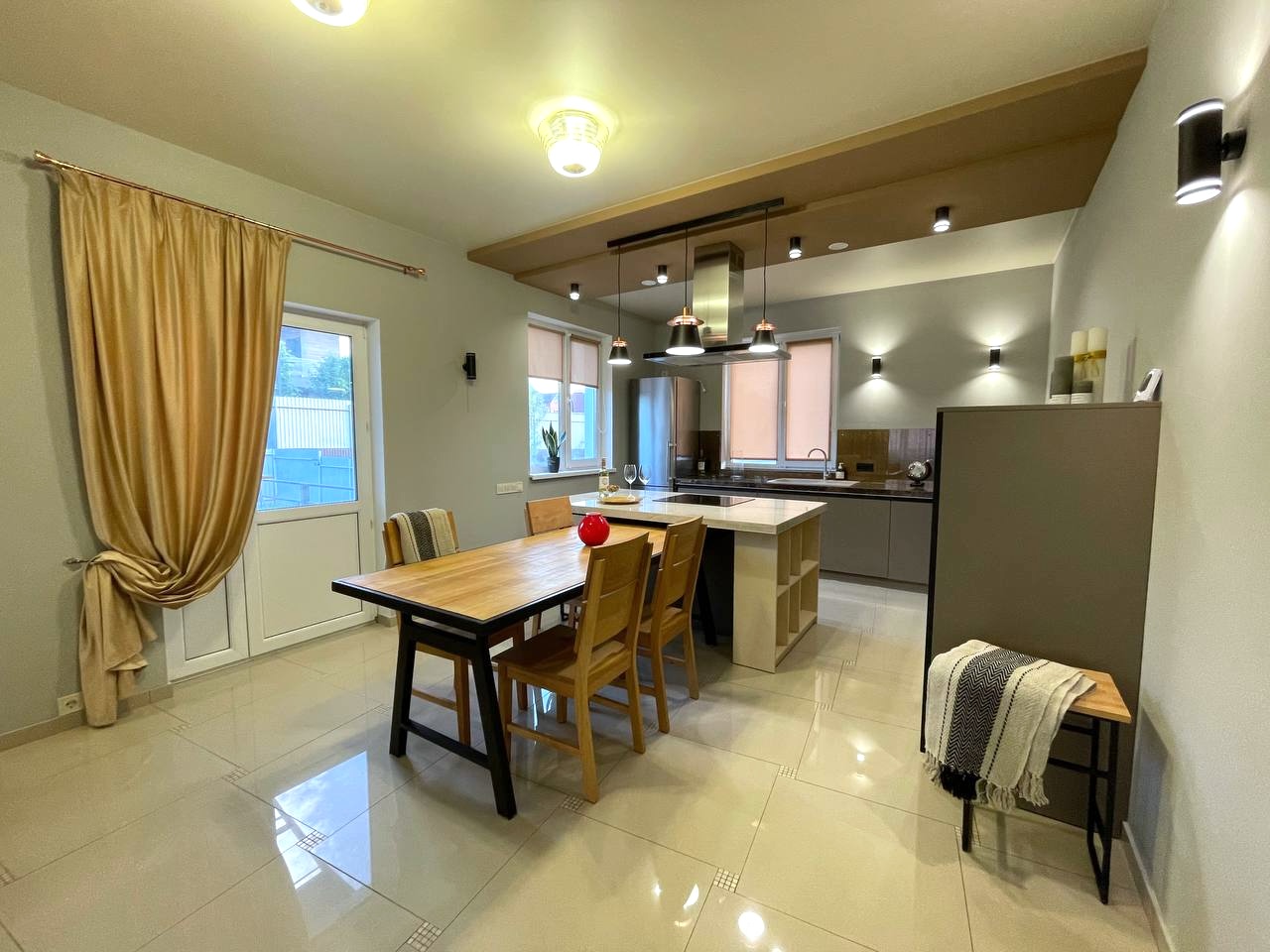 Площа – 240м (220м будинок + 20м тераса), дизайнерський ремонт.