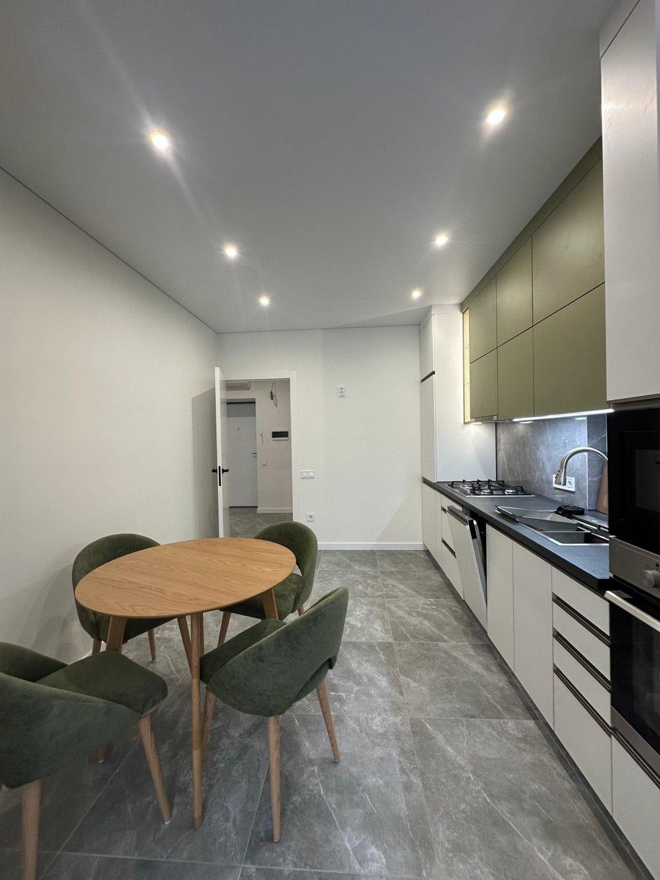 Повністю укомплектована меблями та технікою: * Газова плита * Посудомийна машина * Інверторний кондиціонер * Духова шафа * Мікрохвильова піч * Пральна машина * Холодильник * Підігрів підлоги Заходь і живи! Квартира не потребує жодних вкладень — усе зроблено зі смаком.