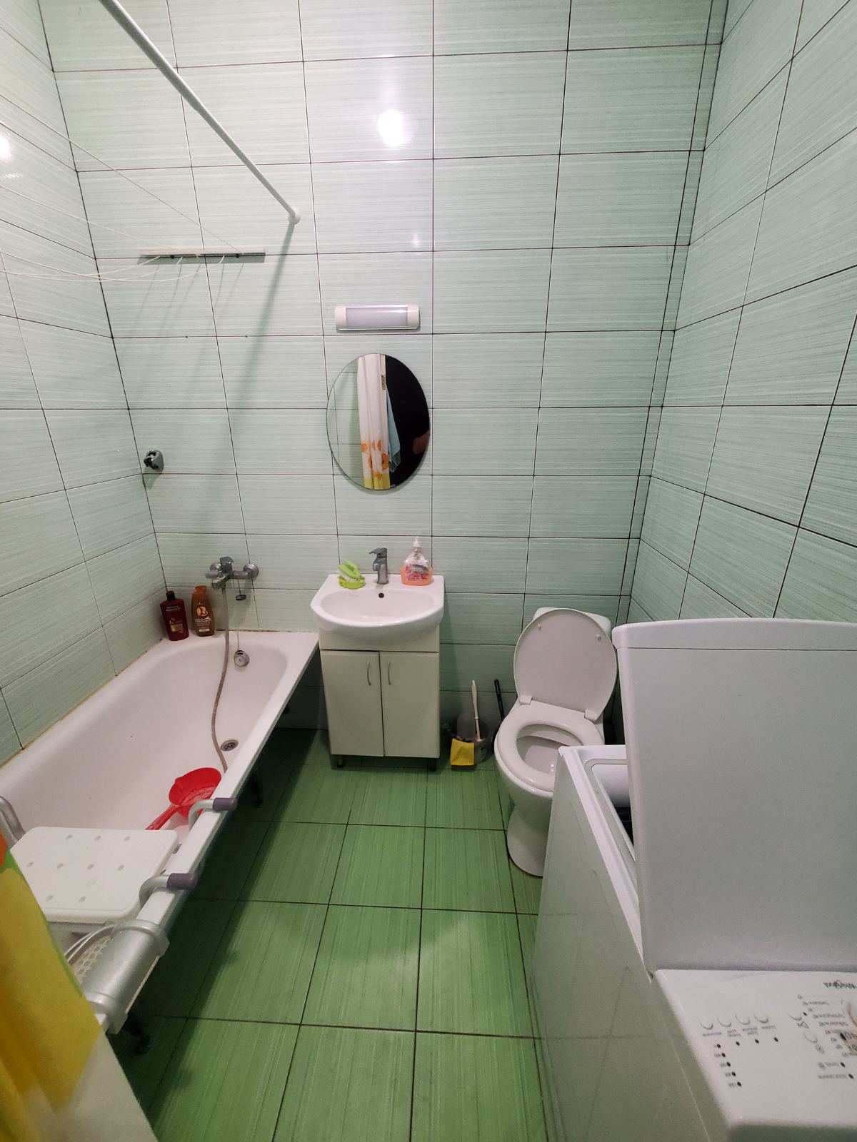 Кухня-студія з зоною спальні та окремим санвузлом. Комплектація меблів та техніки: диван розкладний, обідній стіл, шафа-купе, газова плита, холодильник, витяжка, мийка. Санвузол з ванною, пральна машина, умивальник з дзеркалом. Встановлений двоконтурний газовий котел на опалення, газовий лічильник. Велике панорамне вікно.