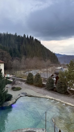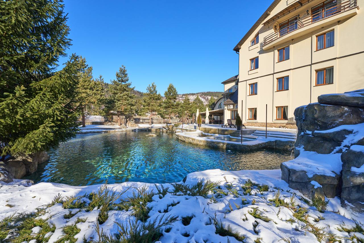 Сьогодні комплекс уже пропонує гостям внутрішню аква-зону з класичною сауною та невеликим басейном для охолодження та відновлення сил.Також вже влаштовано сучасний відкритий басейн. Це дозволить гостям насолоджуватися плаванням просто неба з виглядом на карпатські вершини, що є ключовим магнітом для туристів у будь-який сезон.