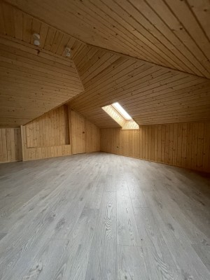 Планування: тамбур, коридор, вітальня з вже встановленим каміном фірми Dovre та виходом на криту терасу, кухня, дві спальні, санвузол, технічне приміщення та мансардний поверх оздоблений деревом з відкритим простором.