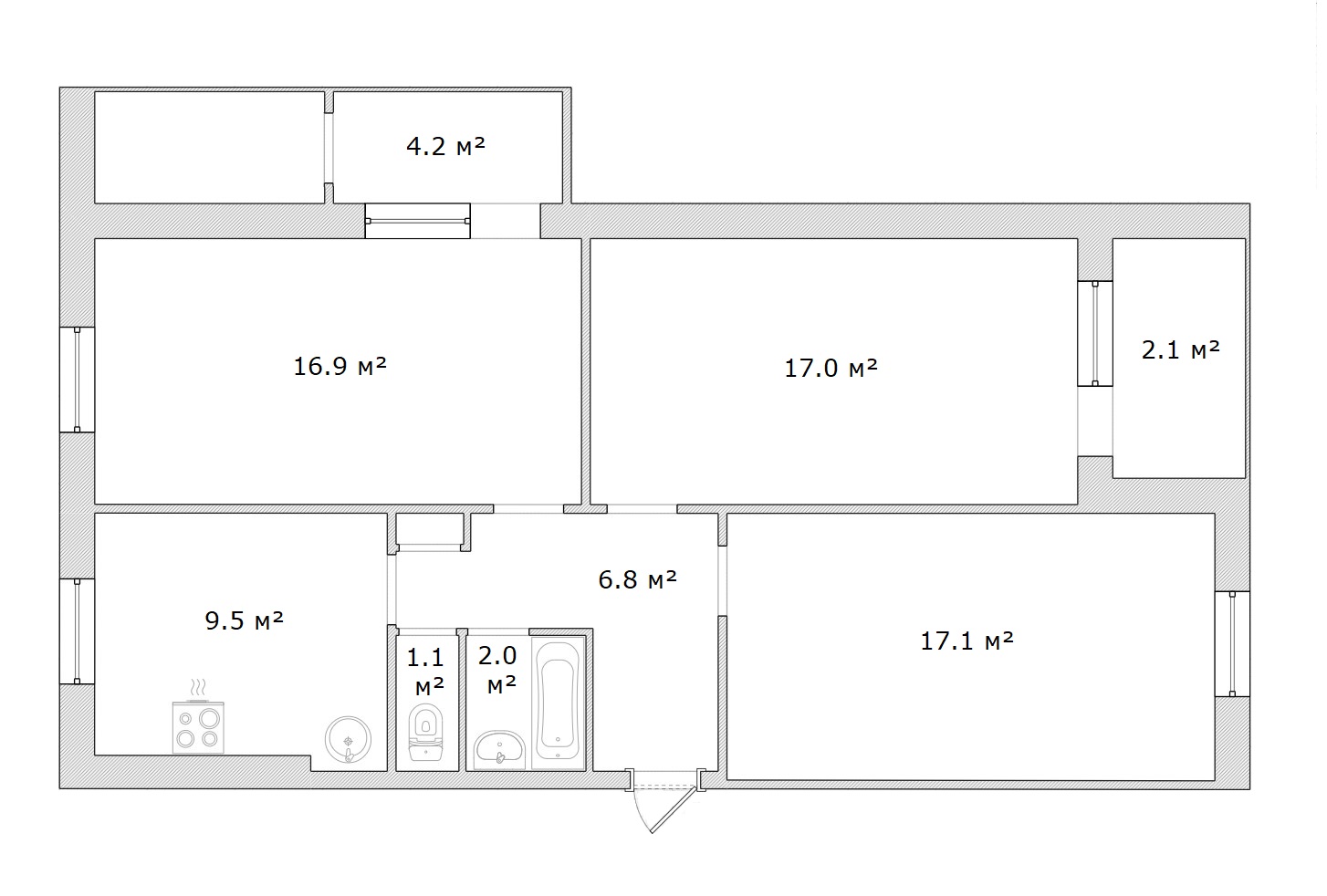 Загальна площа: 77 кв.м