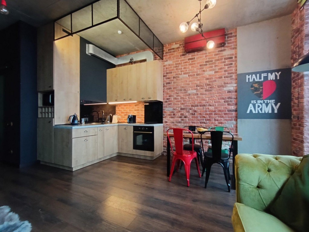 Авторський дизайн з високоякісних матеріалів та побутовою технікою преміум класу, все залишається. У квартирі встановлено АВР (автоматичний ввід резерву) для автономного живлення власне квартири.