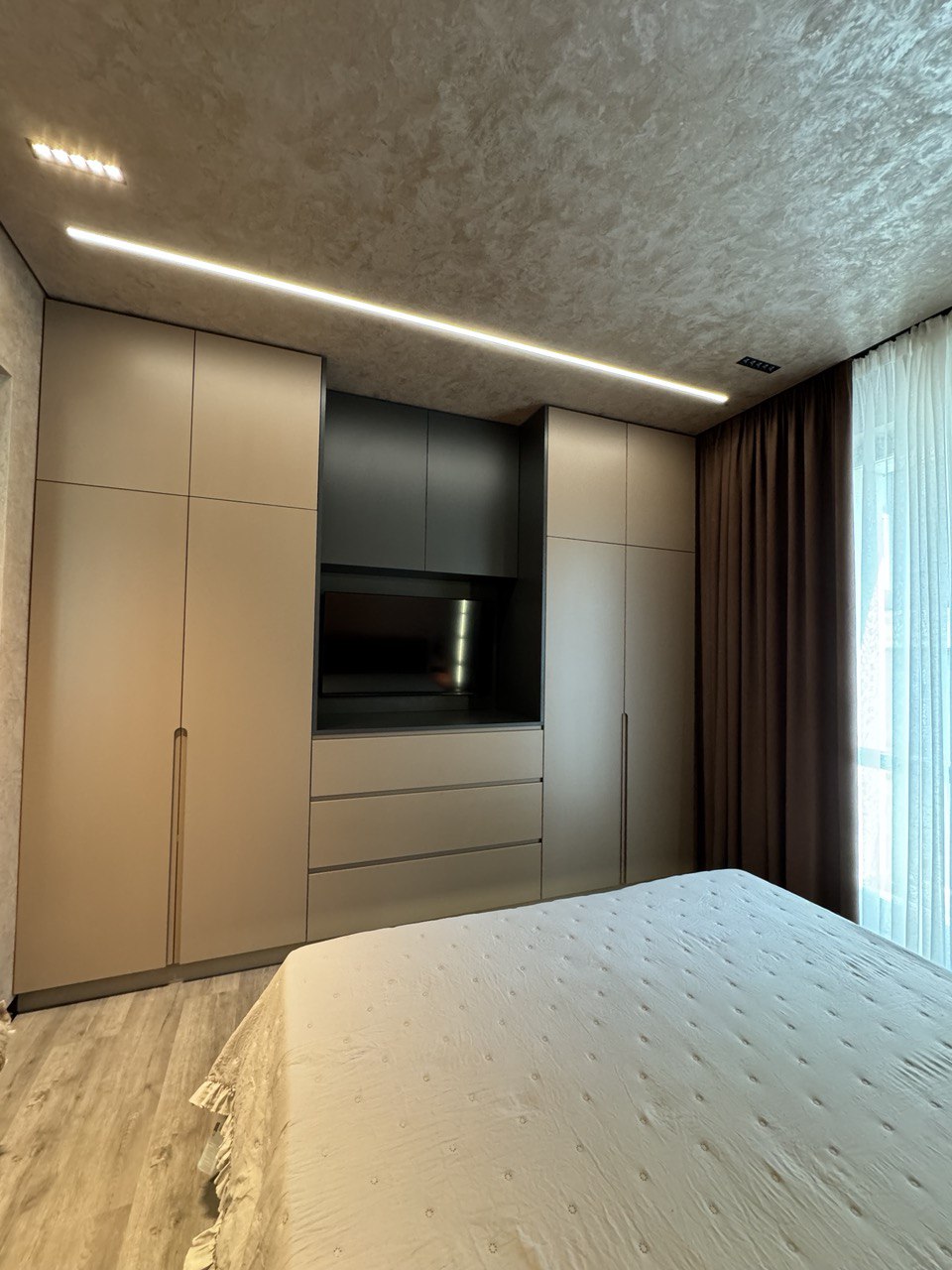 ОСНАЩЕННЯ КВАРТИРИ . всі корпусні та м’які меблі Frankoff . багато різних сценаріїв освітлення . декоративна штукатурка у всіх приміщеннях . ексклюзивна акцентна стіна під камінь, виконана вручну художниками та штукатурами . біокамін . вбудована побутова техніка . кондиціонер