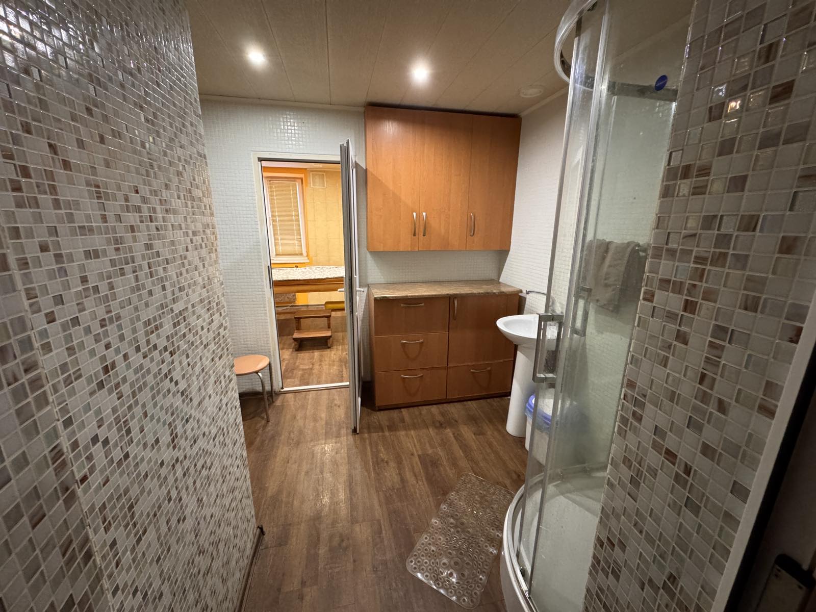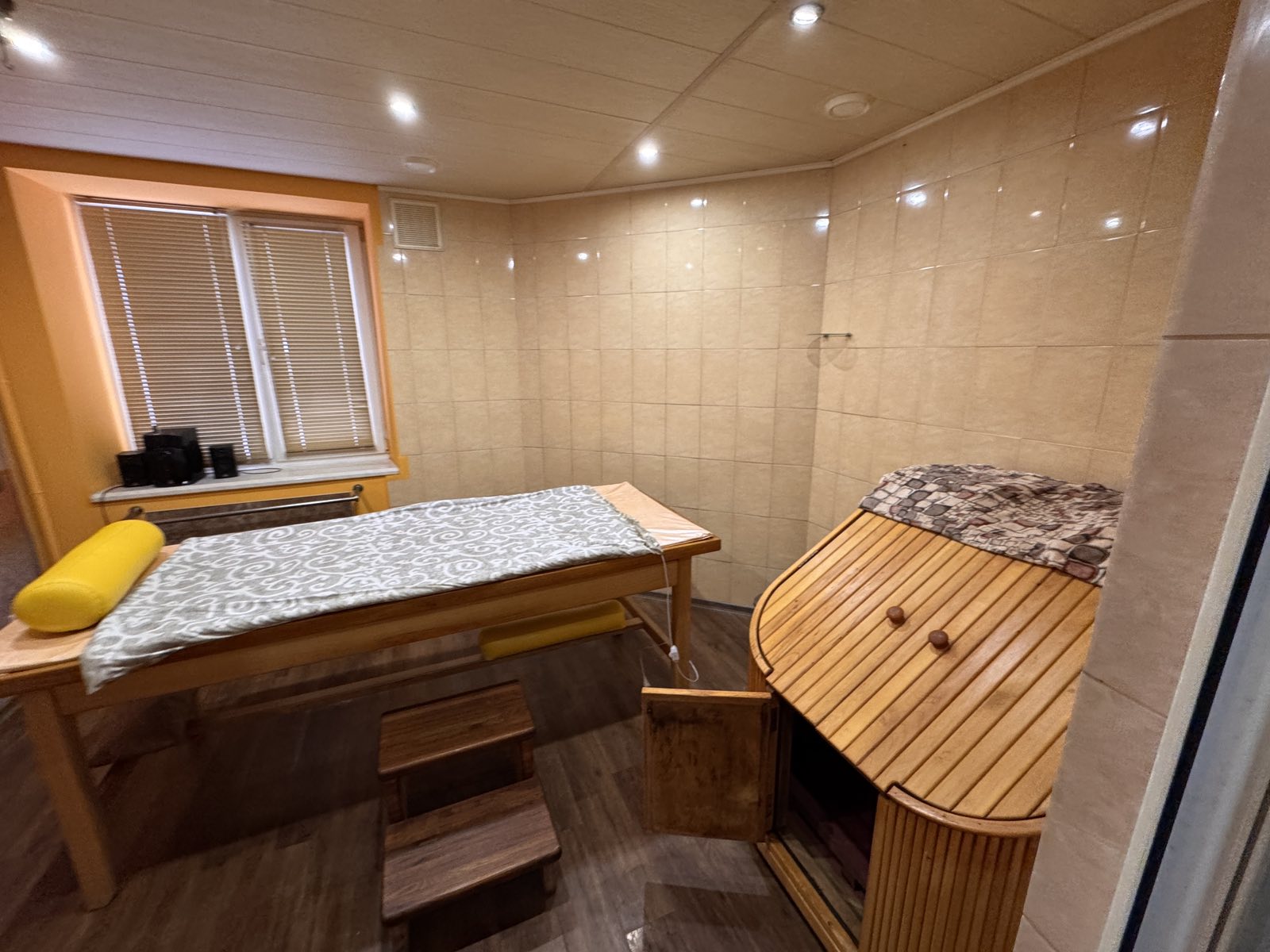 Приміщення розташоване на цокольному поверсі п’ятиповерхового будинку, має окремий вхід та власну невелику огороджену територію, що є додатковою перевагою для бізнесу.