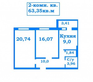 - комнаты — 20,74м и 16,07м,