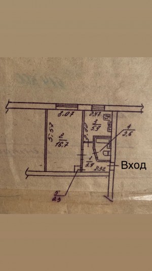 Загальна площа – 44,5 м.кв., житлова – 27,1 м.кв. (16,9 м.кв. + 10,2 м.кв. ), площа кухні –…