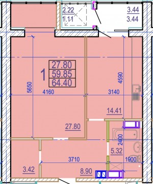Загальна площа: 64.4 кв.м