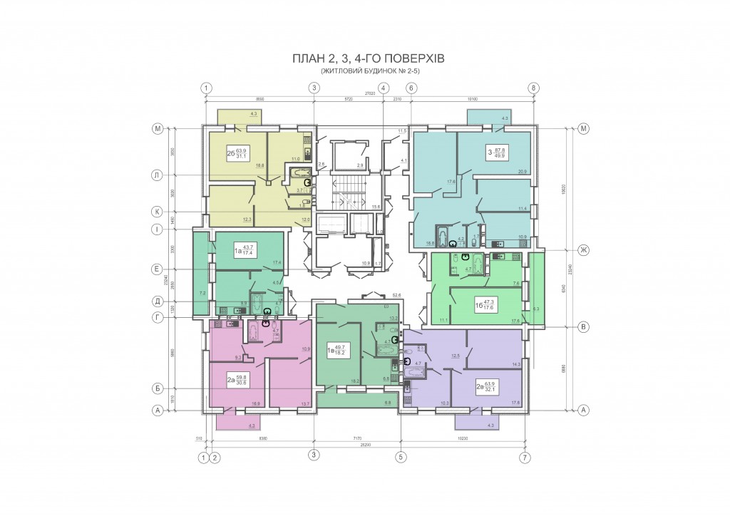 • встановлені перегородки як зазначено на плані;