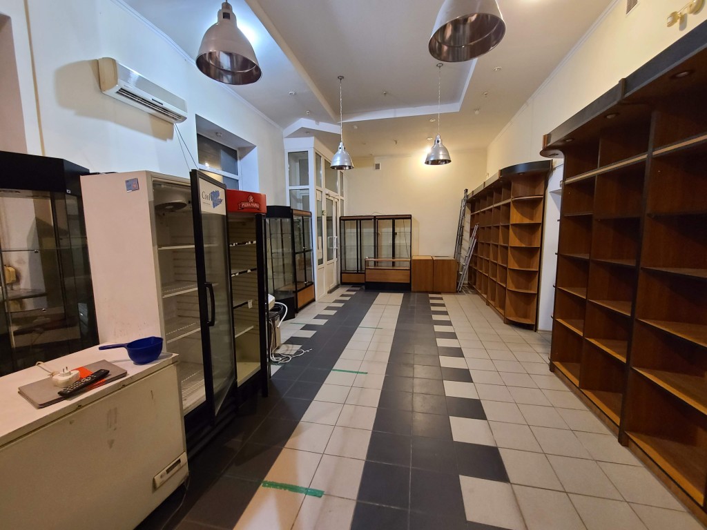 Аренда торгово-офисного помещения в Центре (р-н остановки Шевченко) по ул. Европейской, 24/42, общей площадью 93,3 м2 на Красной Линии. Характеристики помещения: - 1 этаж общей площадью 93,3 м2; -- торговый зал- 56,8 м2; -- 2 кабинета (5,7 м2+12,8 м2); -- санузел -- фасадная часть здания; -- высота помещения Н= 3,85 м.; -- коммуникации- централизованные; -- пожарная и охранная сигнализации; -- система кондиционирования воздуха