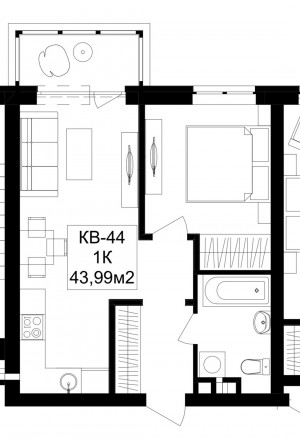 Загальна площа: 44 кв.м