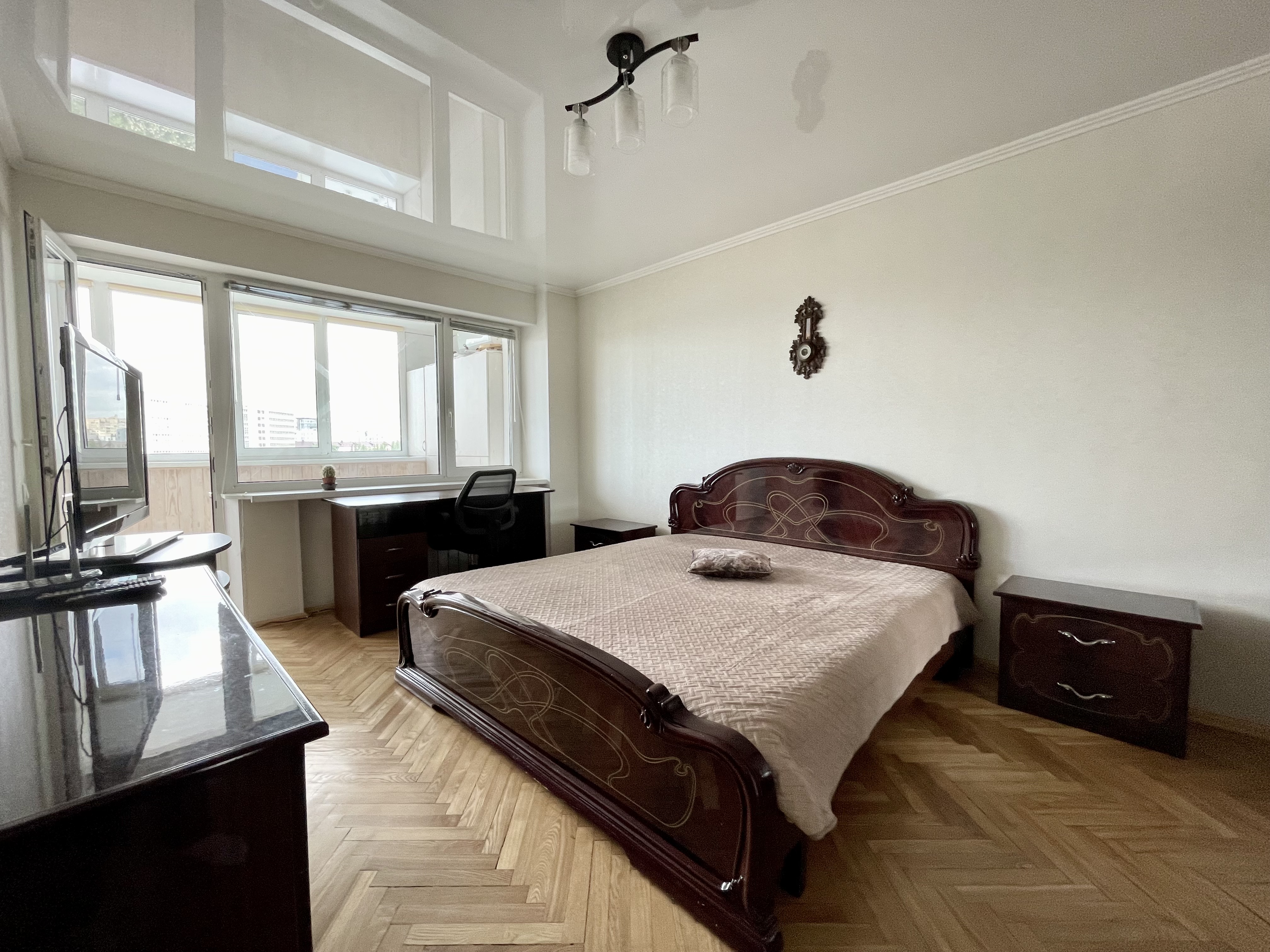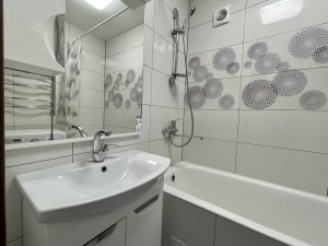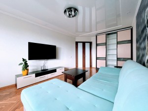Меблирована. Две застекленные лоджии. На кухне встроенная мебель с бытовой техникой. Ремонт в светлых тонах. Установлен кондиционер. Санузел раздельный. В ванной бойлер на 80 л. Стиральная машина автомат.