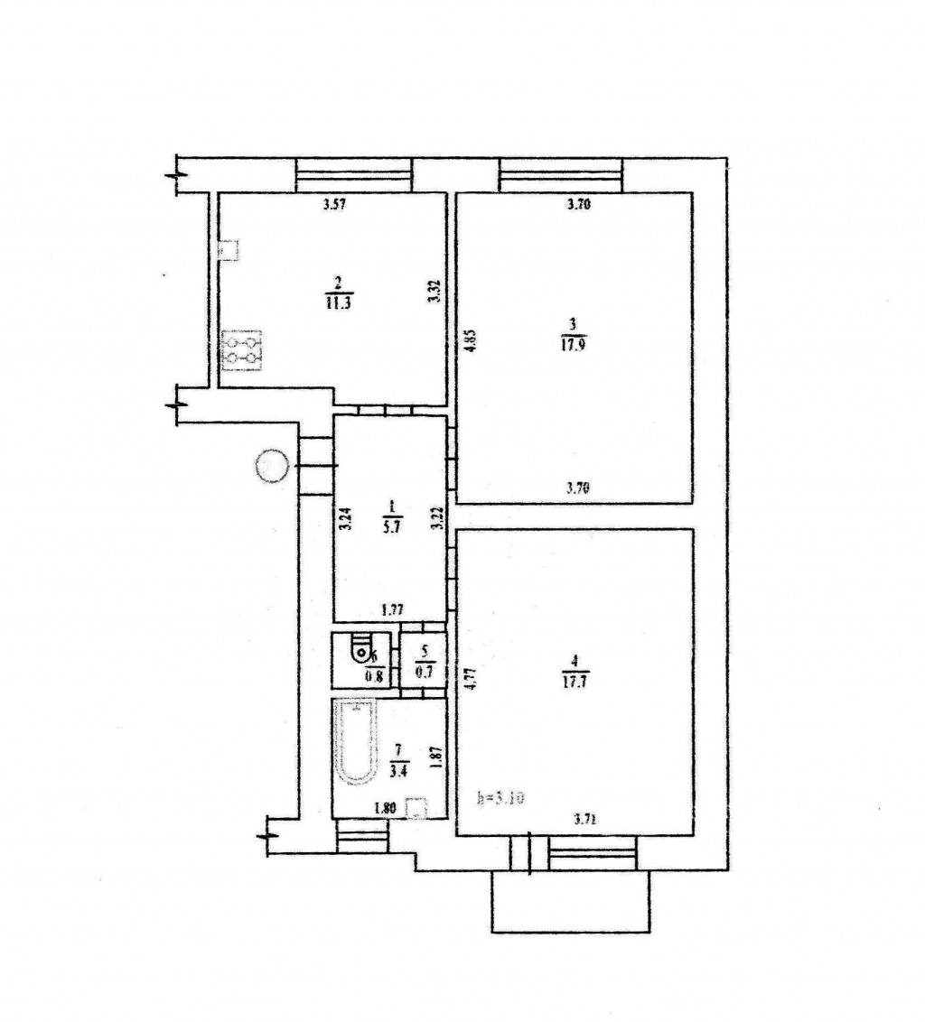 3 кімн., площа 66.3/41/10, поверх 4/4